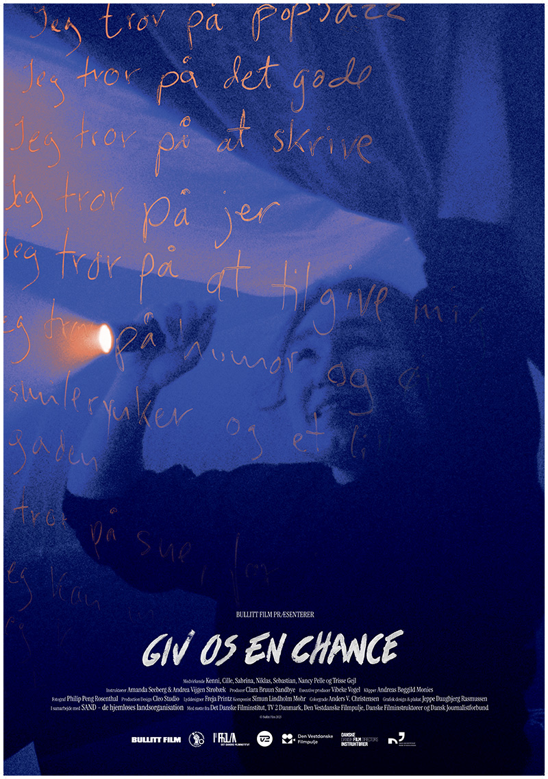 I dokumentaren 'Giv os en chance' møder vi fem unge voksne, der alle kender til et liv med misbrug og hjemløshed. Fælles for dem er oplevelsen af ikke at være frie, men at være fanget i fortællinger, andre har skrevet om dem. Nu får de for første gang mulighed for at fortælle deres egen historie gennem en kreativ skrivegruppe.